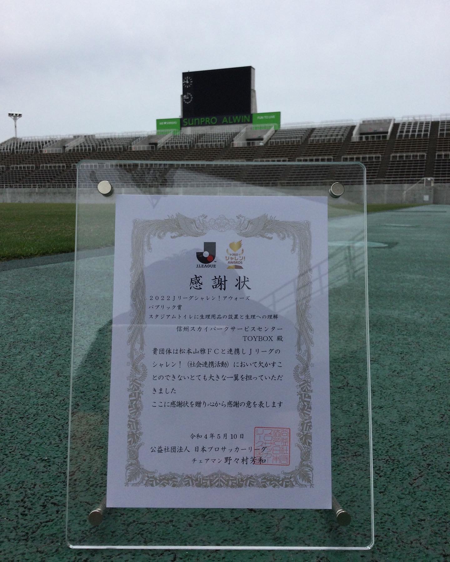 2022Jリーグシャレン!アウォーズで松本山雅FCが見事にパブリック賞を受賞しました!