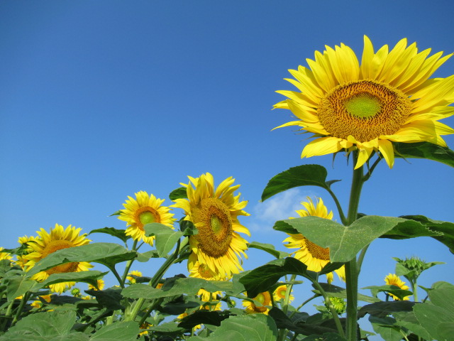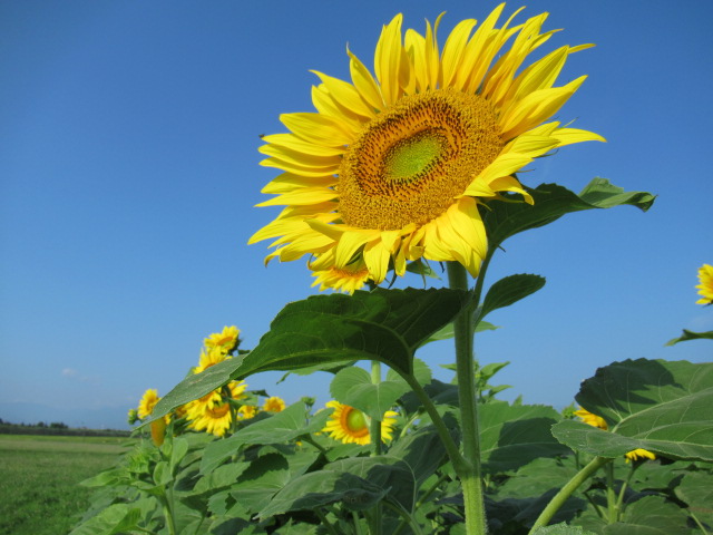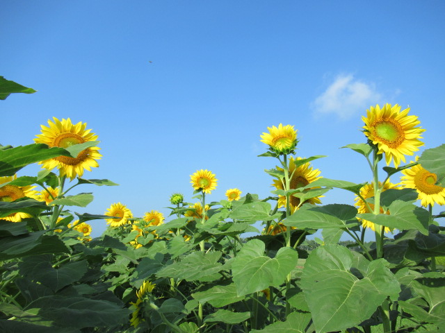 そんな暑さの中で太陽に向かって鮮やかな姿で咲いているのは、ヒマワリの花。