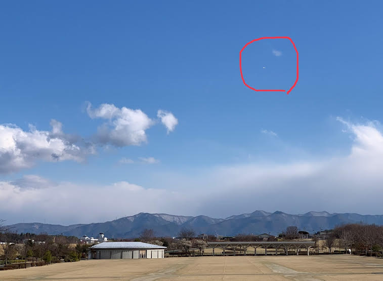山が雪をかぶっている寒さを伝えるべく写真を一枚。遠くに(赤丸の中)何やら発見!!