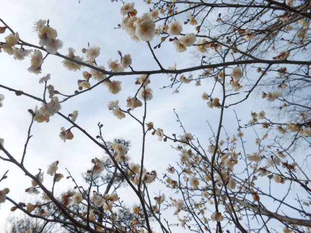 梅の花 さやかかに白く 空蒼く つちはしめりて 園しづかなり 伊藤 佐千夫