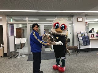 本日より、J2優勝シャーレ&トロフィーがサンプロアルウィンで展示されています。