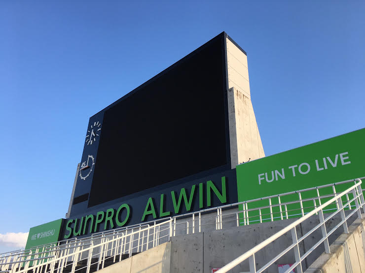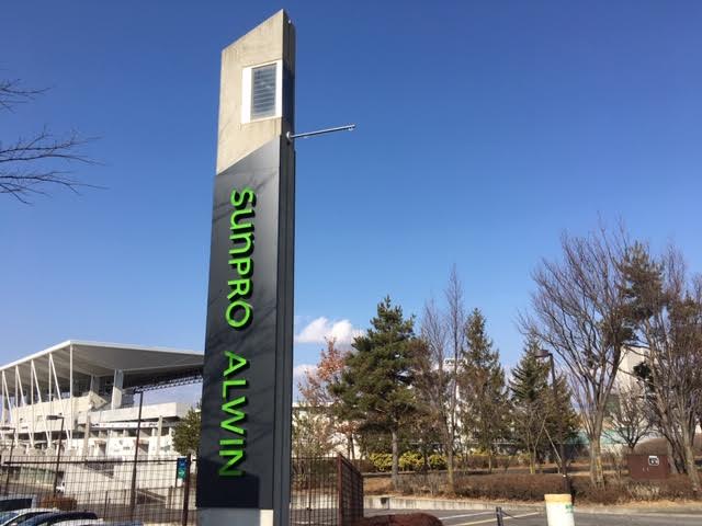 先日新聞にも載っていましたが、ネーミングライツのサンプロさんの看板がサンプロアルウィンビジョンにもついに設置完了。