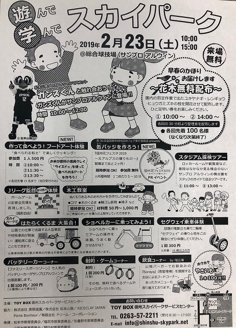 明日、「サンプロアルウィン」では、遊んで学んでスカイパークが開催され(10::00~15:00 )