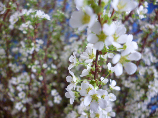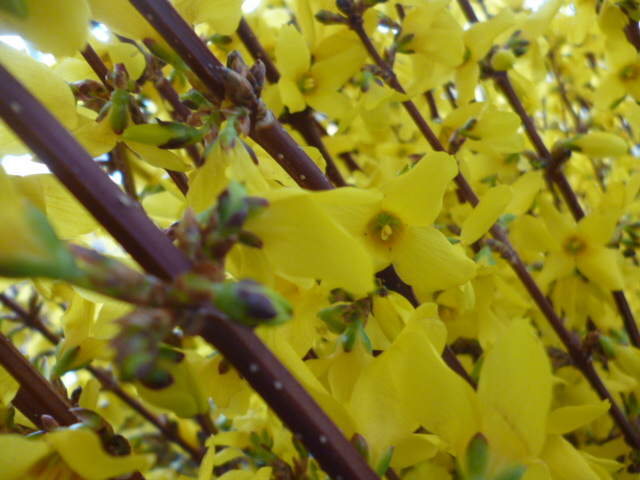 園内の選定作業で出たレンギョウ・ユキヤナギ・ヒュウガミズキの枝を開花させて