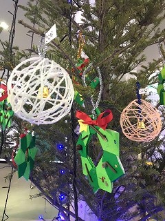 飾りが無く寂しかったツリーも柏木保育園の皆さんのおかげでとっても華やかでクリスマスらしいツリーになりました(^^)