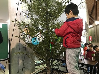 ということで、やまびこドームのロビーにクリスマスツリーを設置し、柏木保育園の園児の皆さんに飾り付けを行ってもらいました(^^)