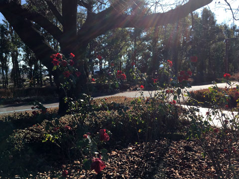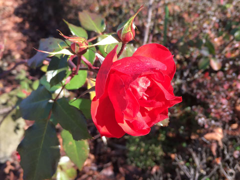 今年きれいに整備された【花のプロムナードゾーン】のバラ園では、霜に当たってもなお色あせず咲いている花を見つけました。
