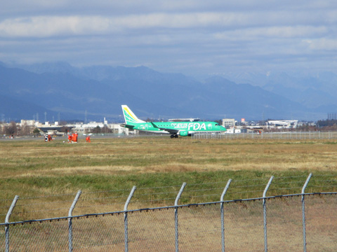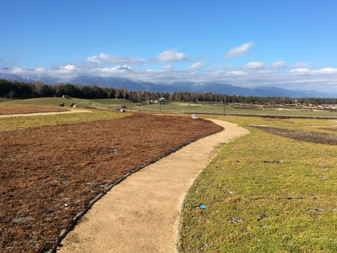 こちらは松本空港の滑走路です。野と花のゾーンの、ワイルドフラワー園から見た景色です。
