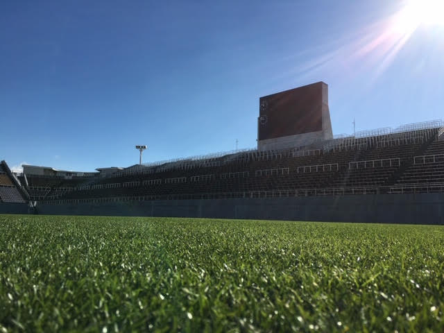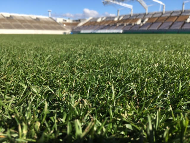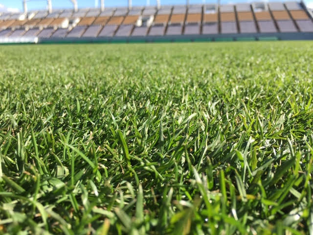 芝生を張り替えた総合球技場は