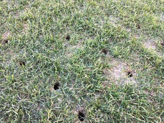 地面に穴を開けて、空気を入れています。