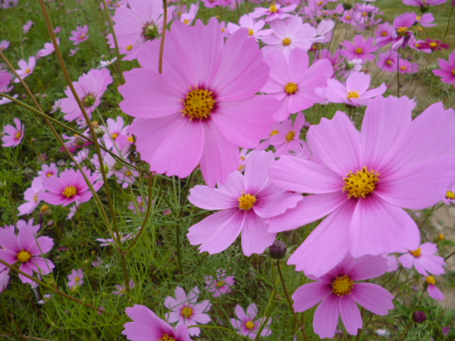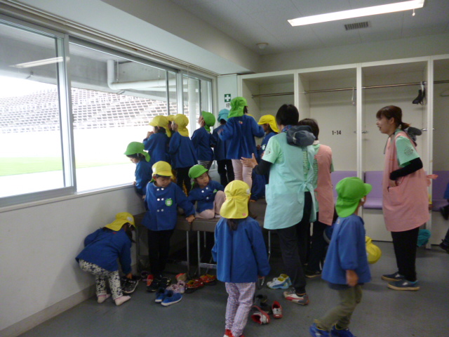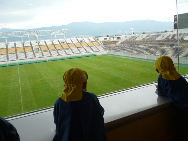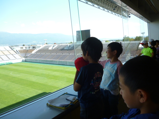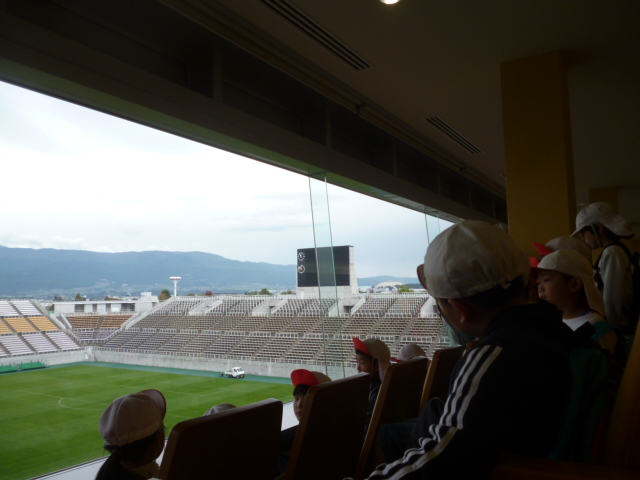 十月も半ば、スカイパークは県内の小学生の社会見学で賑わっています。スタジアム見学を希望する小学生。今年は保育園の園児さんも加わりました。元気な子供たちの声がスタジアム一杯に溢れ、笑顔の花が咲いています。↓10/9 来場 松本市立岡田小学校3年生の生徒さん 65名 ↓10/10 来場 岡谷市あやめ保育園の園児さん 96名 この子らの つぶやき聞こえ じーんときて 見つめる先は サッカー選手 T.A ロッカールームからピッチを見る、あやめ保育園の年長、年中さん。(年少さんも来ました)足元の靴を見ると、色彩豊かなかわいらしい飾りのついた靴、テレビマンガのキャラクターの靴ほのぼのとした温かさが、胸に染みてくるような・・どうかけがの無いようにと見守りました。↓10/15 来場 松本市立開智小学校3年生の生徒さん 111名 観覧席からピッチにいるお友達に手を振っています。 やさしいね 陽のむらさきに 透けて咲く 去年の秋を 知らぬコスモス 俵 万智昨年の秋に種がこぼれたコスモスが、また新たに咲き始めました。秋が、深まって一気に気温が低くなりました。お体ご自愛ください。三十一文字(みそひともじ)