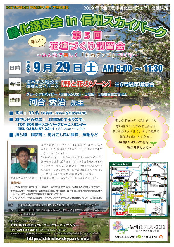 講師の先生は、河合 秀治先生(グリーンアドバイザー(園芸ソムリエ)、土壌医、1級造園施工管理士)です。