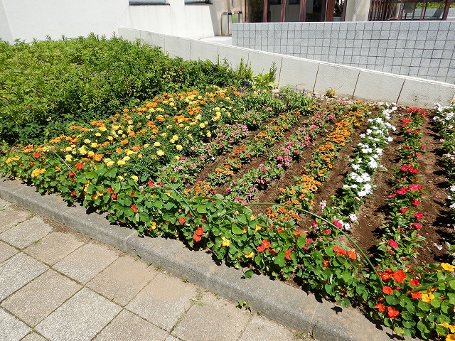 南管理棟 花壇 だんだんと花一株一株が大きくなってきました。