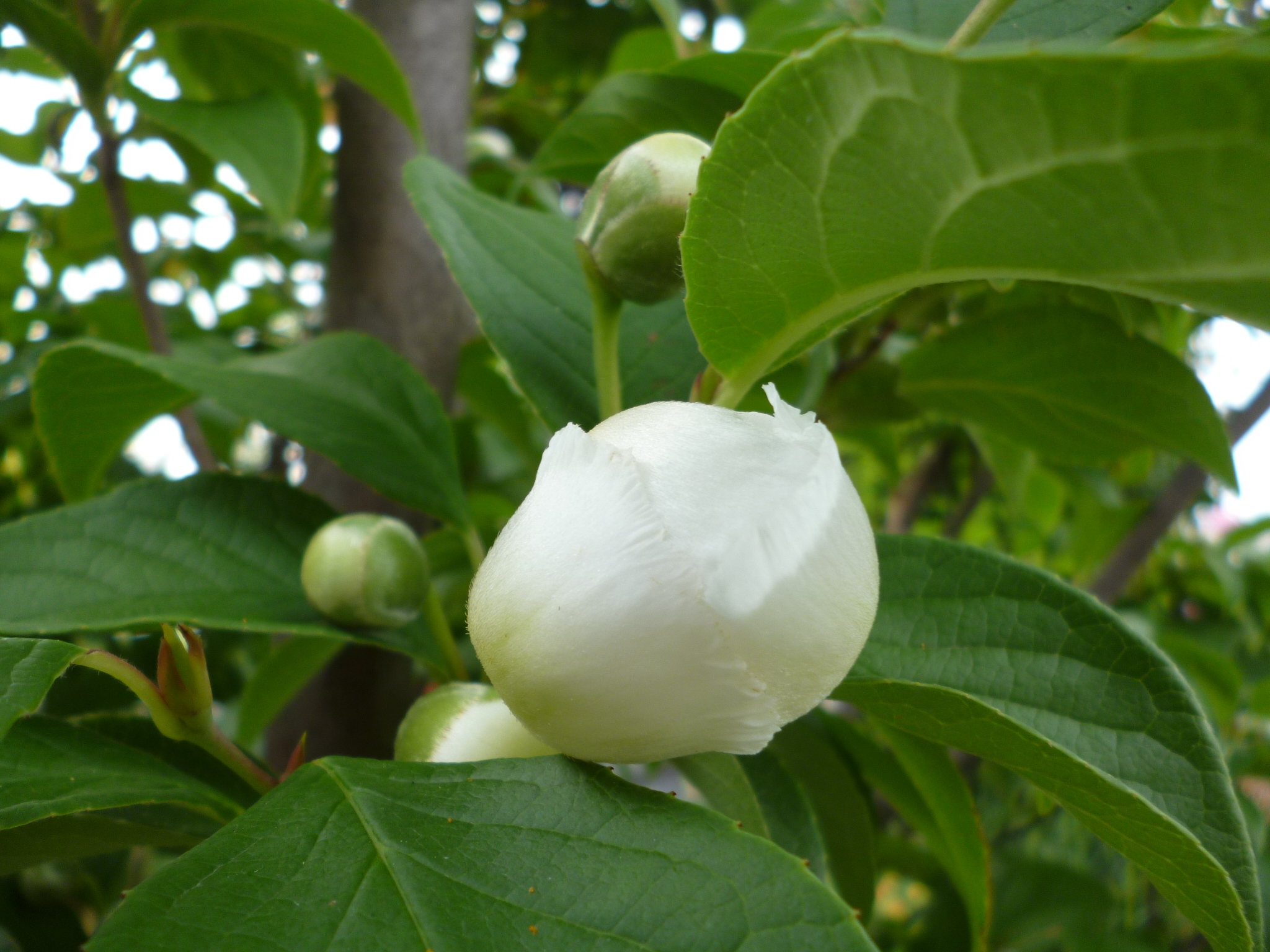 時折の 雨粒はじく ナツツバキ 真珠のような かがやき放つ T.A