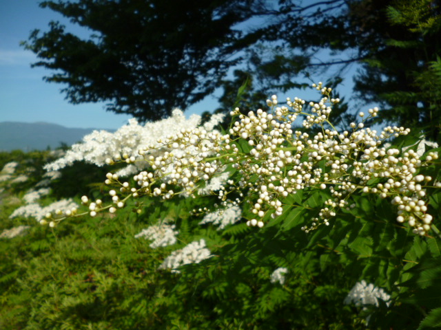 草も木も そらの青さに 溶け込んで 風に吹かれて 白い花ゆれ T.A