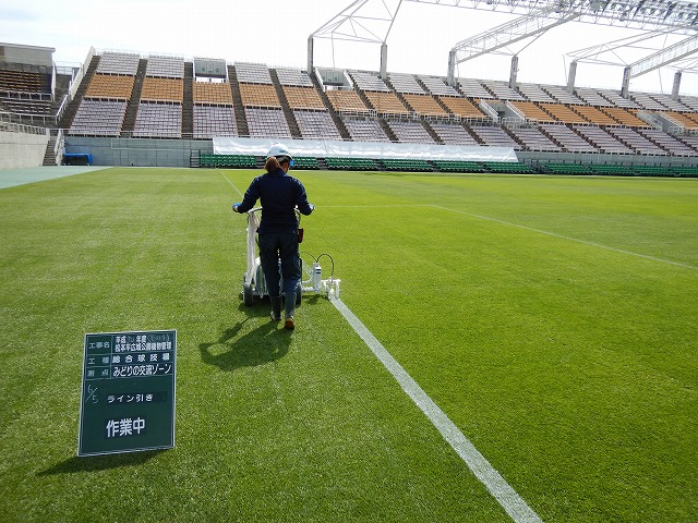 今日も一日暑かったですね~27℃ぐらいでしたがいつもよりムシ暑く感じました(^_^;)さて、明日は天皇杯全日本サッカー選手権大会2回戦が行われる予定です。19時kickoffですが、明日は終日雨予報だったので今日のうちに芝刈り、ライン引き作業を行いました。 【ライン引きのプロがライン引き中の図】松本山雅FC初戦となります。雨を吹き飛ばすぐらいの熱いご声援を信州スカイパークで(^O^)/~ではでは、ぎびぃv(^_^)v追伸:昨日のプロフェッショナルは「かこさとし」さんでした。