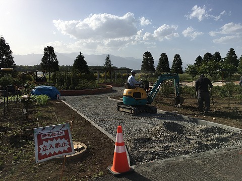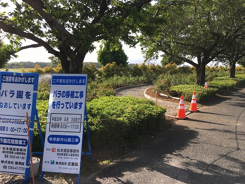 花のプロムナードゾーンでは現在バラ園の整備工事が行われております。 以前と比べて大幅なリニューアルとなりそうです♪お散歩の際は変わりゆくバラ園の姿をご鑑賞下さい。(工事期間は8月8日との記載がありましたので、それまでは決して工事区域には立ち入らないようにお願い致しますm(_ _)m)では、では。ぎびぃ(^_^)v